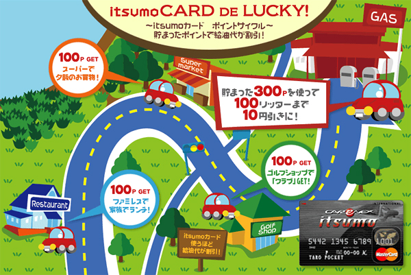 | カード特典 | ・入会特典として給油料金を特別割引 ・給油時にカード利用で給油料金を割引 ・ワーナー・マイカル・シネマズの入場料金を300円割引 ・カード利用ごとにポケットポイントを加算 ・ポイントに応じて魅力的な商品をプレゼント ・JALマイレージバンクとのマイル交換も可能 ・ETCカードの年会費無料発行(オプション) |